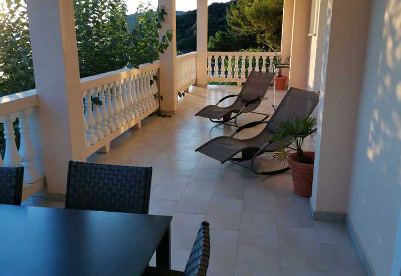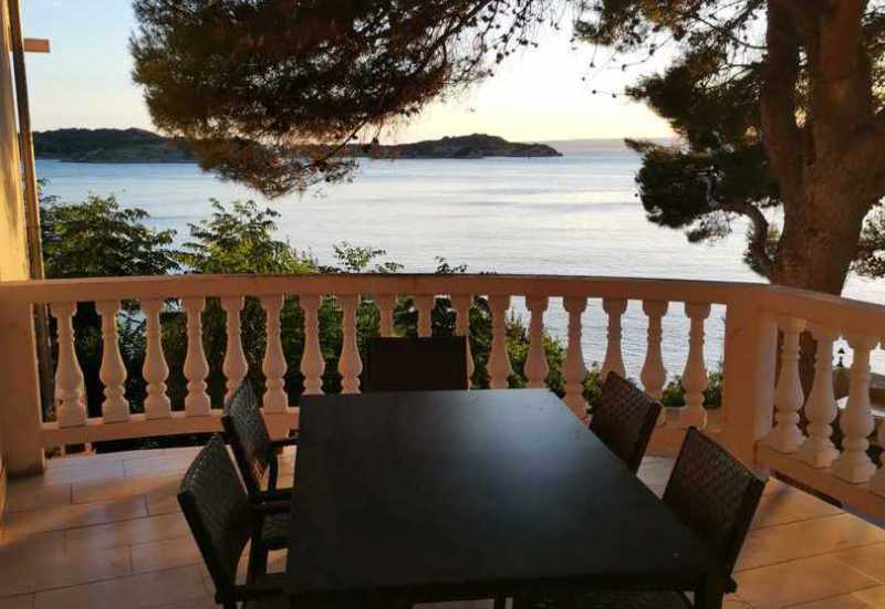 Willkommen auf KaRo´s Island. Genießen Sie den einmaligen Blick über die Bucht von den Terrassen des ersten Obergeschosses des Ferienhauses.